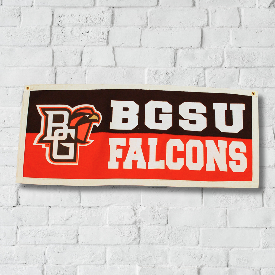 Bold and eye-catching, this 14x32 pennant features a split color design with a soft flocked finish. A classic way to add BGSU pride to your wall, dorm, or game-day setup.
