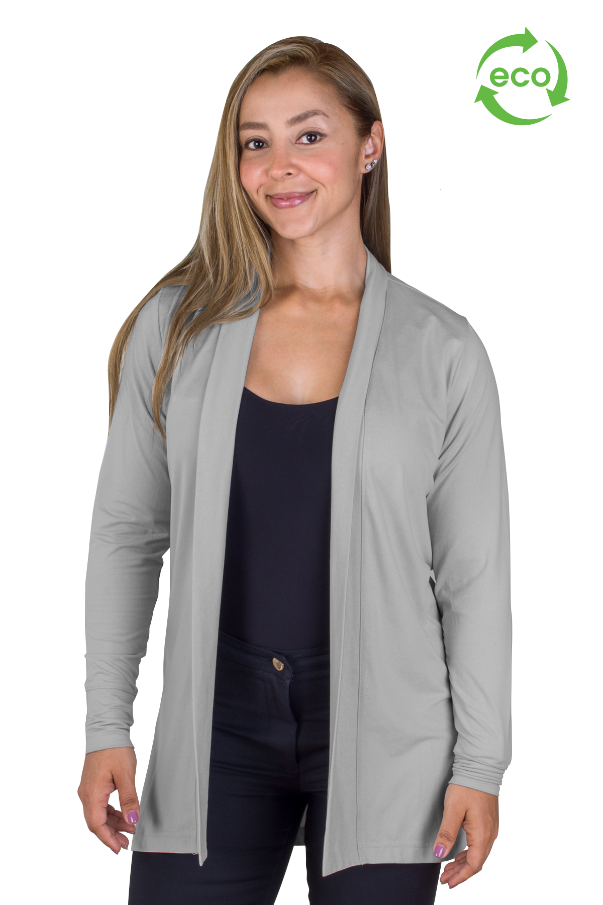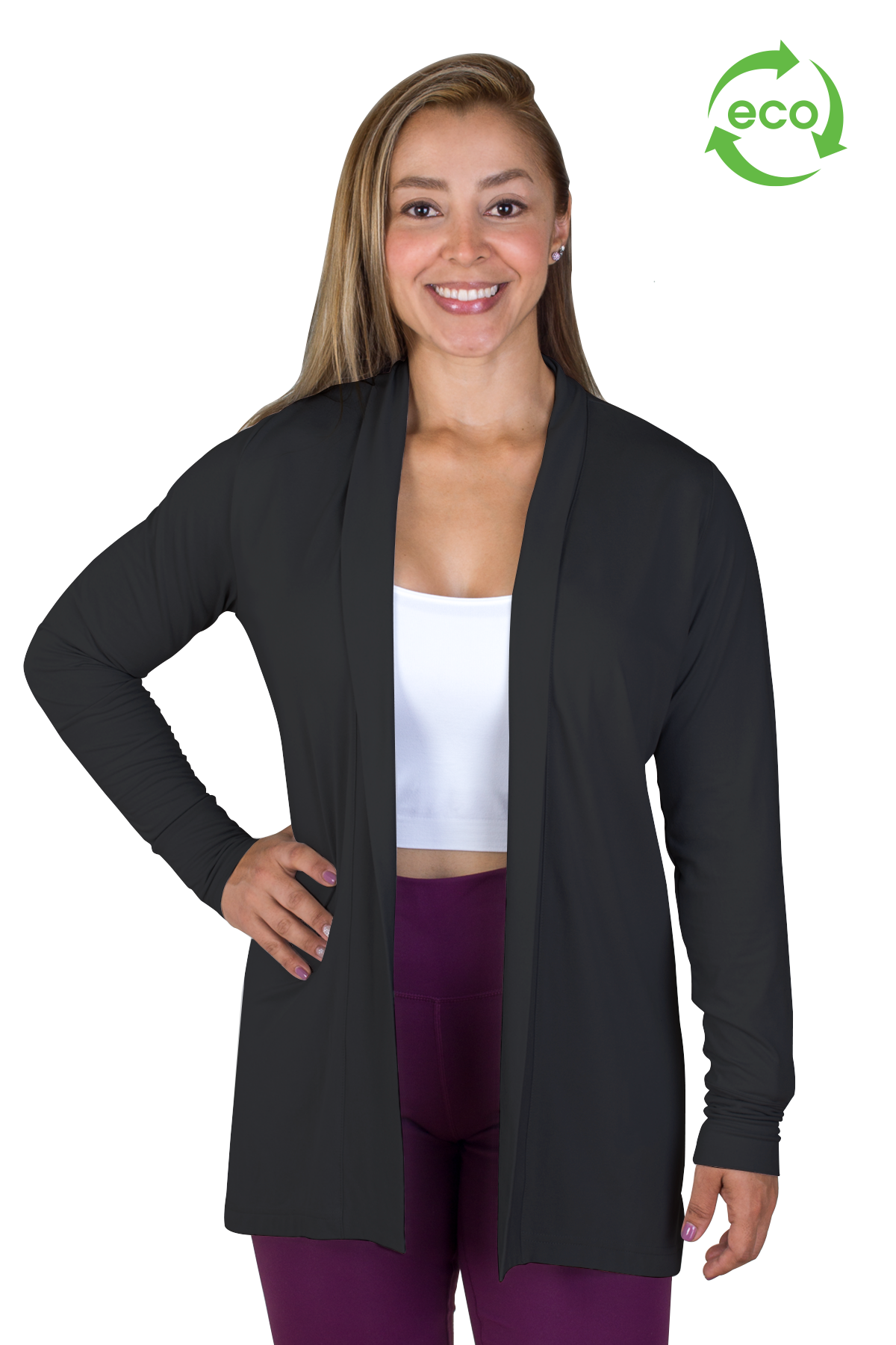 The next stage in loungewear, the eco-friendly Grace Flow cardigan is comfortable, refined, and office approved. Made with super-soft REPREVE premium recycled polyester and moisture wicking properties for sport performance that keeps the Earth healthy too. Each cardigan keeps 7 post-consumer plastic bottles from ending up in our oceans and landfills.