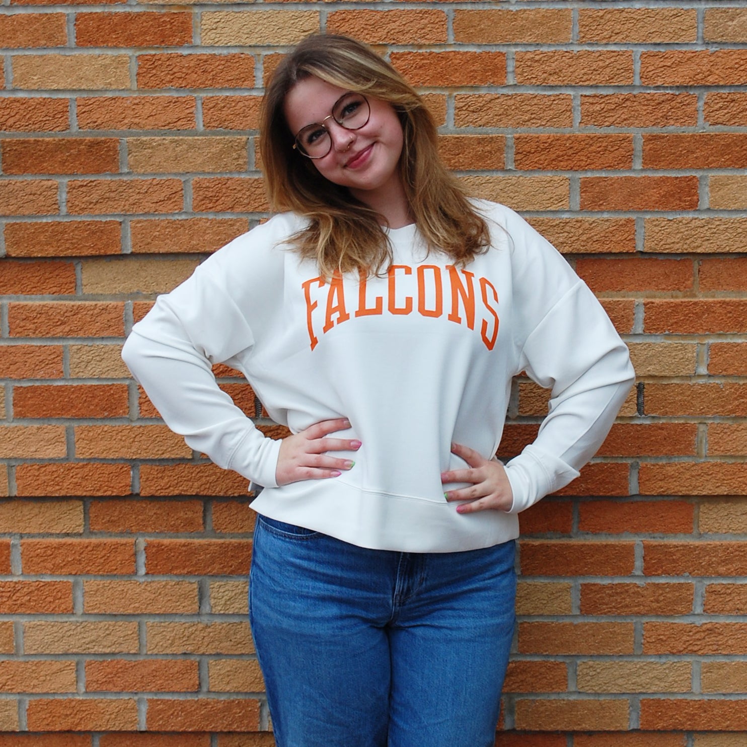 A soft, elevated staple with cozy vibes all around. This super smooth cashmere crew features simple Falcons lettering, a relaxed fit, and thumb holes for that extra-snug, lounge-worthy comfort. Perfect for chilly days on campus or curling up at home.